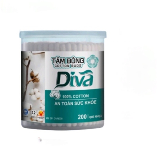 Tăm Bông Diva Người Lớn Thân Nhựa (Hủ/200 que)
