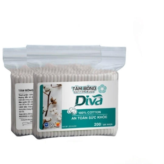 Tăm Bông Diva Người Lớn (100 Que) (Lốc / 12 bịch)