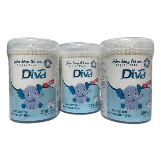 Tăm Bông Thân Giấy Em Bé Diva Baby (Hủ/200 que)