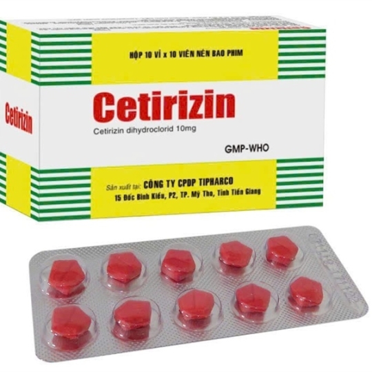 Cetirizin (đỏ) TIPHARCO(tiền giang)(100V) (hộp)